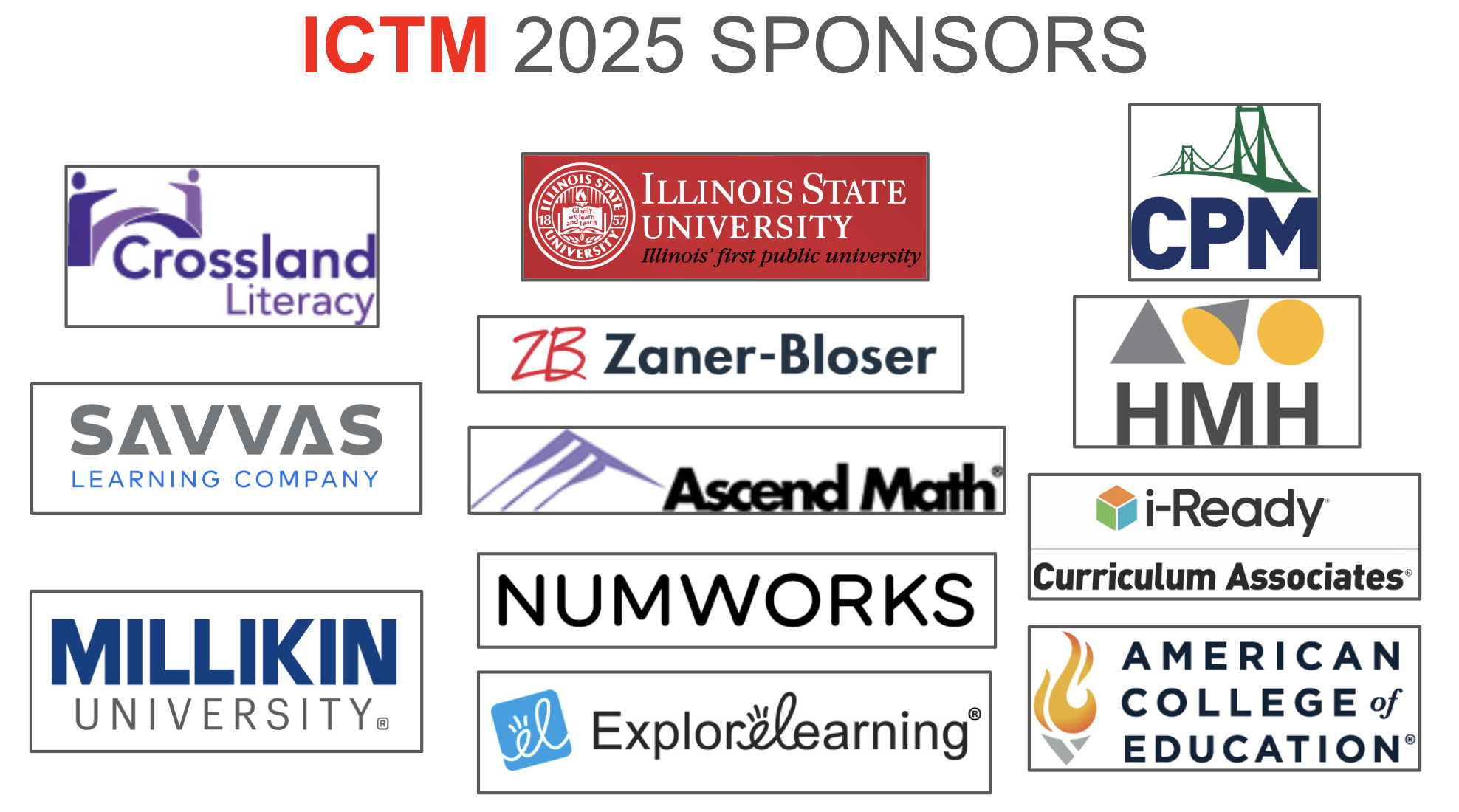 The 2025 annual ICTM conference was held on Saturday, October 4th on the Illinois State University campus at Bloomington-Normal! 250 Educators of all levels gathered for an amazing day of learning, reflecting, and connecting. ICTM sends a special thank you to all of the speakers. Without you, there is no conference!  We also thank all of our sponsors who help support our conference financially so we can keep registration costs lower.  Click HERE to visit our "virtual exhibitor hall" and learn more about these sponsors!